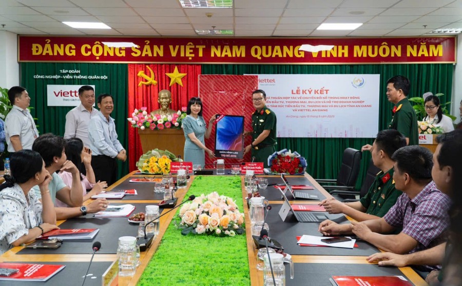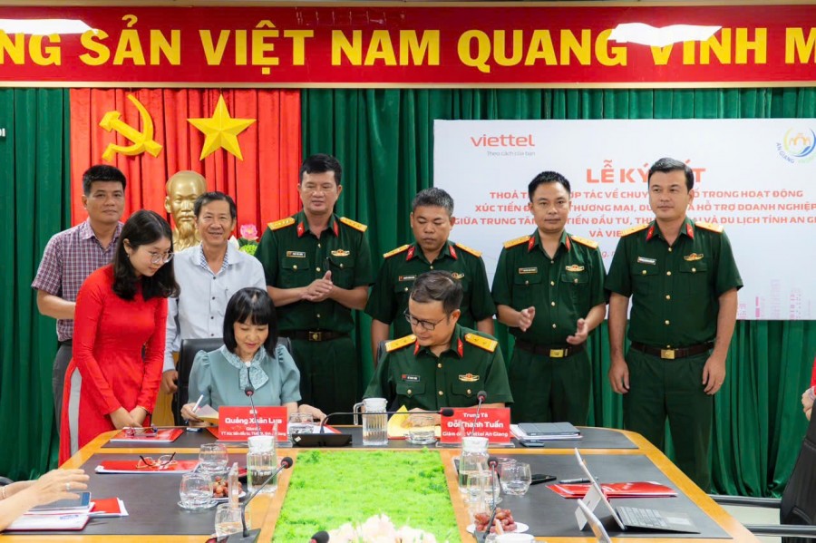 Viettel An Giang và Trung tâm Xúc tiến Đầu tư - Thương mại và Du lịch tỉnh An Giang ký kết thỏa thuận hợp tác về chuyển đổi số trong lĩnh vực xúc tiến đầu tư, thương mại, du lịch và hỗ trợ doanh nghiệp trên địa bàn.