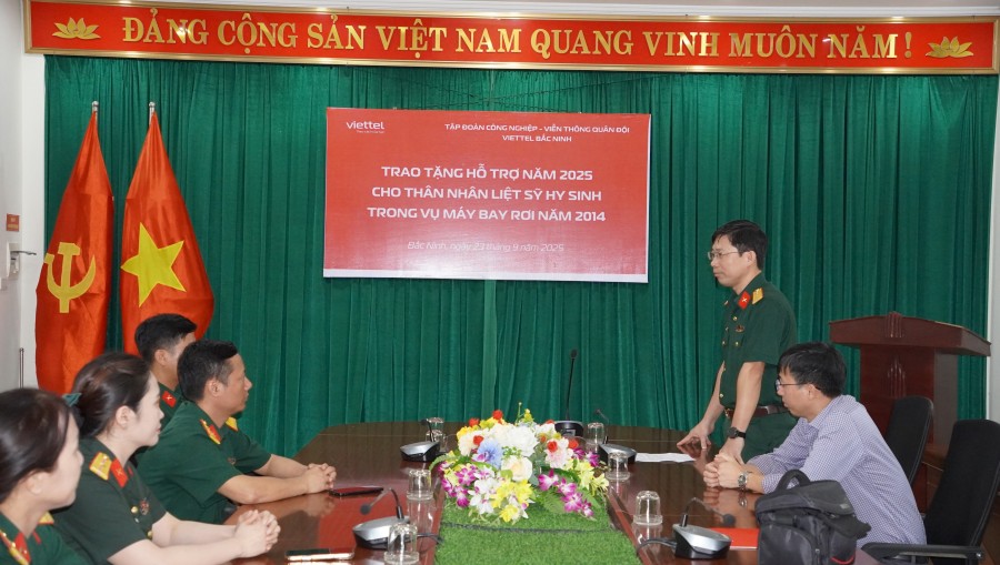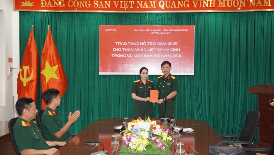 Ngày 23/9/225 tại Trung đoàn 831- BCHQS tỉnh Bắc Ninh, Viettel Bắc Ninh đã tổ chức trao kinh phí hỗ trợ thân nhân quân nhân hy sinh vụ máy bay rơi ngày 07/07/2014 tại Thạch Thất – Hà Nội, cho vợ Liệt sỹ Nguyễn Văn Tuấn với số tiền 24 triệu đồng, đây là kinh phí hỗ trợ năm 2025, năm thứ 12 Viettel thực hiện chương trình này. Với sự đồng hành trên, Viettel tiếp tục khẳng định trách nhiệm, tình cảm đối với những hy sinh cao cả, góp phần bù đắp phần nào mất mát, để gia đình Liệt sỹ luôn được chia sẻ.