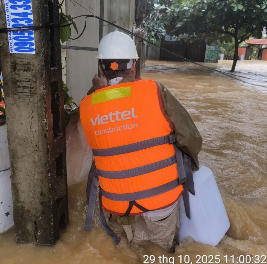 Trong đợt mưa lũ lịch sử cuối tháng 10, khi nhiều xã tại Đà Nẵng chìm trong biển nước, giao thông bị chia cắt, thông tin liên lạc trở thành “mạch sống” của người dân vùng lũ. Giữa tâm nước, Viettel Đà Nẵng đã huy động toàn lực ứng cứu, giữ vững mạng lưới thông tin thông suốt, đảm bảo kết nối cho chính quyền và nhân dân. Đặc biệt, đồng chí Giám đốc Viettel Đà Nẵng trực tiếp có mặt tại hiện trường chỉ đạo khắc phục sự cố, điều hành drone cứu trợ và động viên cán bộ, nhân viên bám trụ địa bàn. Hình ảnh người Viettel tận tâm, kỷ luật, hết lòng vì khách hàng.