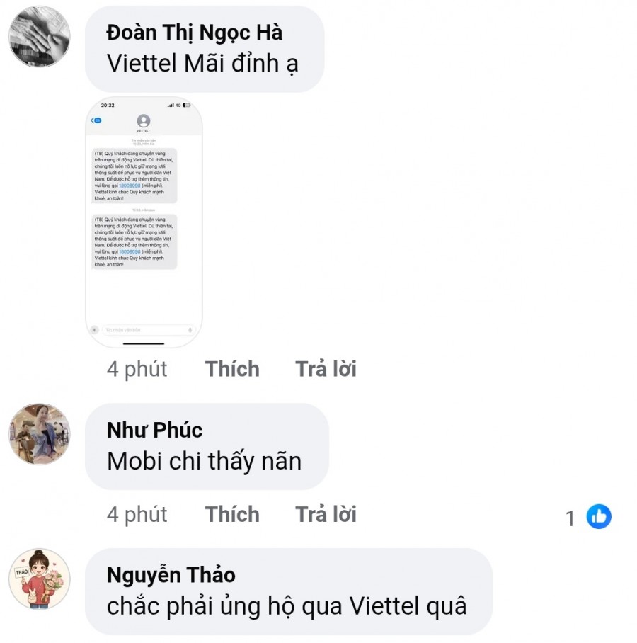 Nhờ tinh thần “vì khách hàng phục vụ”, trong suốt đợt mưa lũ vừa qua, mạng Viettel vẫn duy trì ổn định, phục vụ thông tin thông suốt cho người dân và các cơ quan chỉ huy phòng chống lũ. Trên các trang mạng xã hội địa phương nhiều người dân phản ánh một số mạng khác mất sóng kéo dài, và không ít bình luận cho biết chỉ còn sóng Viettel, nên chuyển sang mạng Viettel sử dụng.