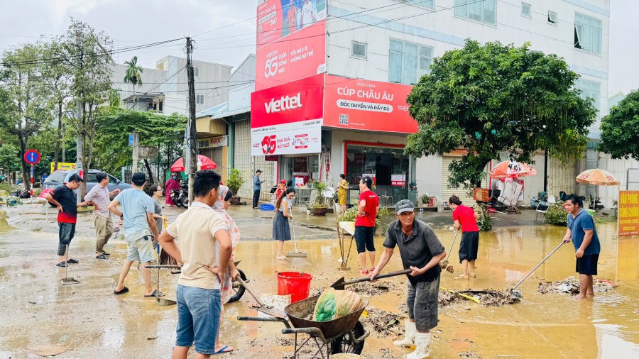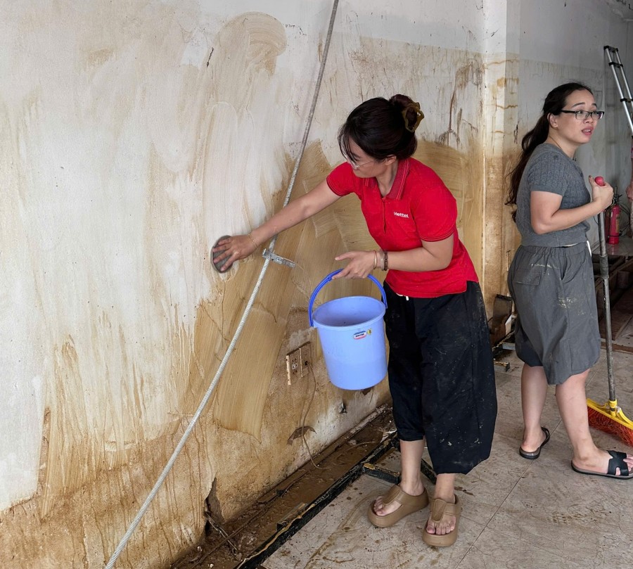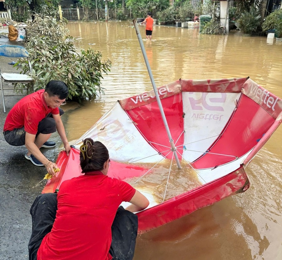 Không dừng lại ở đó, ngay sau khi nước rút, một số cửa hàng giao dịch Viettel tại Đà Nẵng bị ngập sâu, bùn đất phủ kín sàn nhà và dụng cụ. Ngay khi nước vừa rút, cán bộ nhân viên từ khối phòng ban đến cụm xã đã tập trung dọn dẹp, lau chùi, sắp xếp lại cơ sở vật chất, với tinh thần “khôi phục sớm nhất để phục vụ khách hàng sớm nhất”.