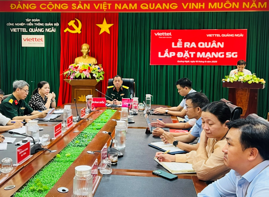 Sáng ngày 16/9/2025, tại Hội trường tầng 7 và 23 cầu truyền hình cụm xã, Viettel Quảng Ngãi tổ chức lễ ra quân lắp đặt mạng 5G với sự tham dự của Ban Giám đốc các đơn vị, cán bộ nhân viên Viettel, cùng các đối tác thi công.