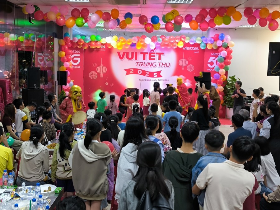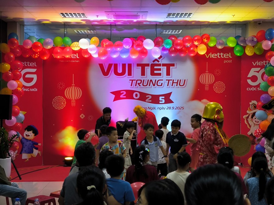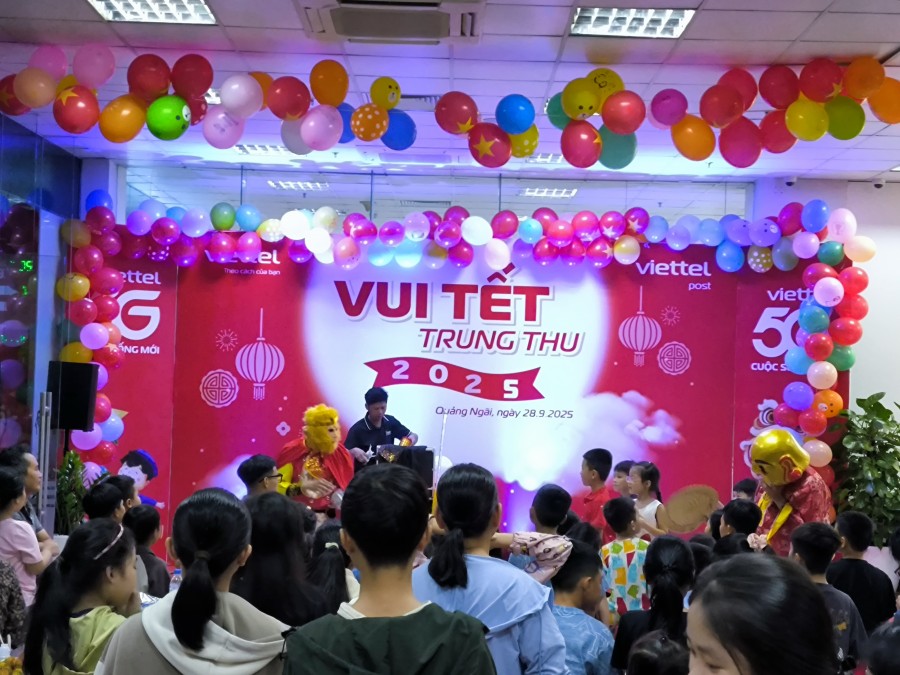Được sự nhất trí của Cấp ủy, Ban Giám đốc, chiều tối ngày 28/9/2025, tại tòa nhà Viettel Quảng Ngãi, Hội phụ nữ các đơn vị Viettel phối hợp với các tổ chức quần chúng tổ chức vui Tết Trung thu cho các cháu thiếu niên, nhi đồng con của CBCNV các đơn vị Viettel trên địa bàn tỉnh.