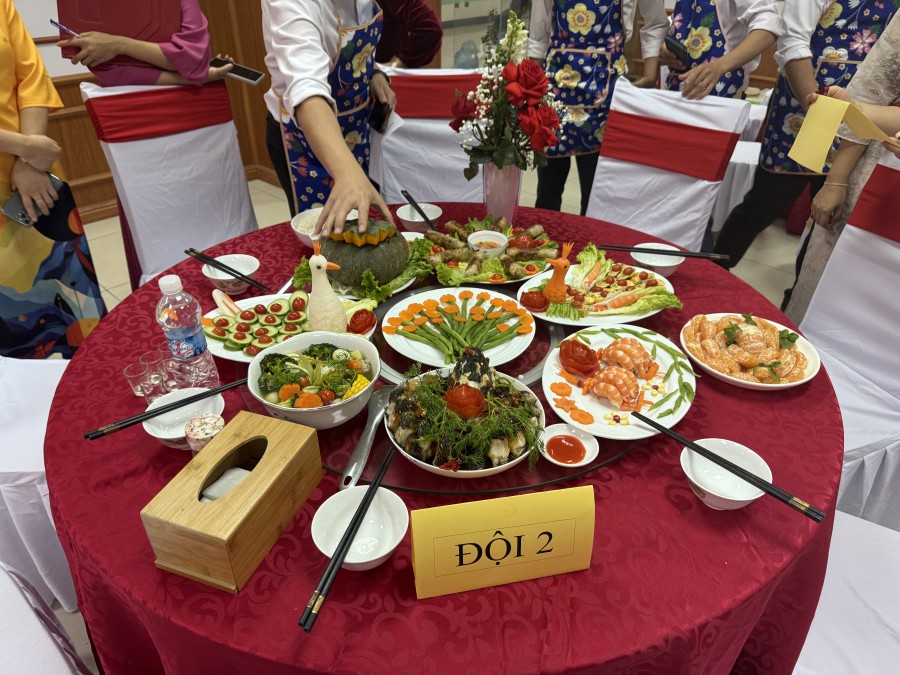 Ngay từ sáng sớm 6/3/2026, các đội đã tập hợp đủ thành viên và thực phẩm cũng như dụng cụ nấu nướng. Tất cả đều do các anh "nam thần" tự tay chuẩn bị từ khâu đi chợ đến sơ chế. Không khí cuộc thi diễn ra vô cùng sôi động. Những hình ảnh quen thuộc của công việc văn phòng được thay bằng cảnh các anh tập trung thái rau, nêm nếm gia vị, bày biện món ăn. Nhiều “đầu bếp” lần đầu đứng bếp đã mang đến những khoảnh khắc hài hước, tạo nên những tiếng cười rộn ràng. Trong khi đó, các nữ cán bộ nhân viên vừa là khán giả cổ vũ nhiệt tình, vừa hào hứng chờ đợi những “thành quả” đầy bất ngờ từ các đồng nghiệp nam.