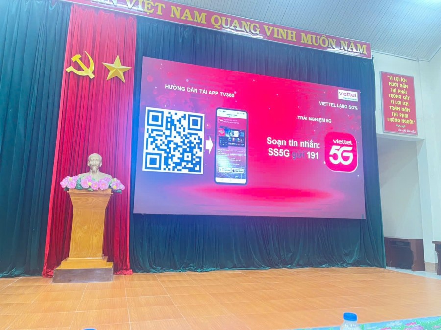 Viettel Lạng Sơn chiếu mã QR để mọi người dân đều có thể tải app TV 360.