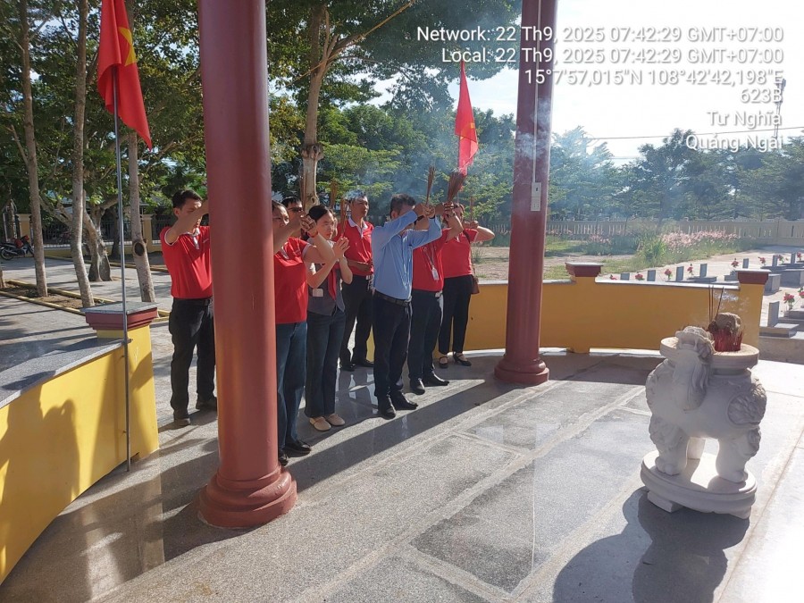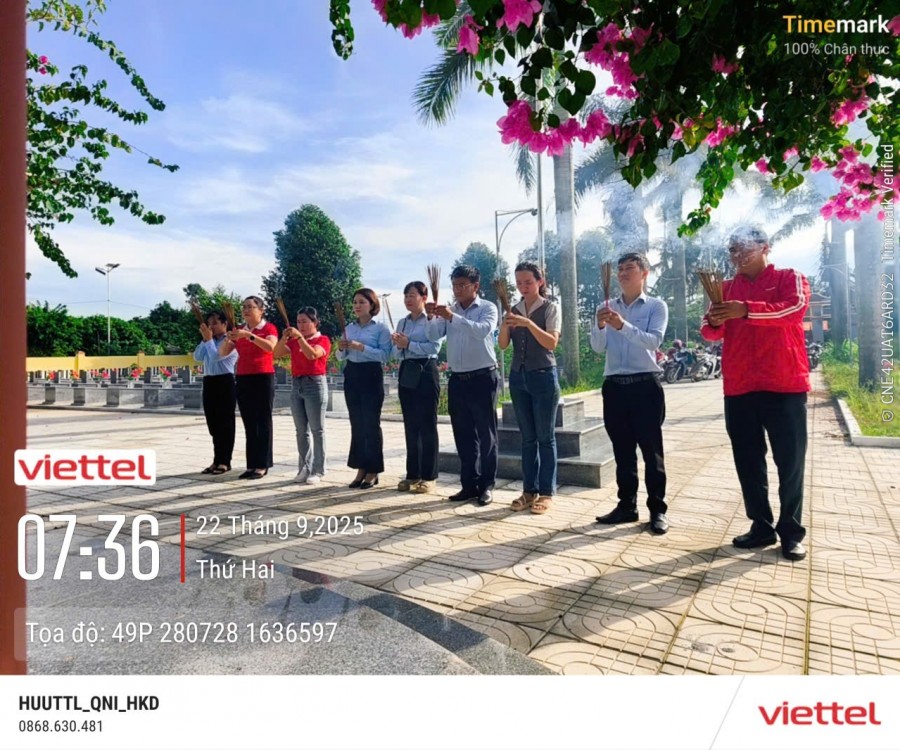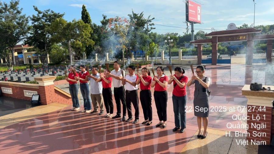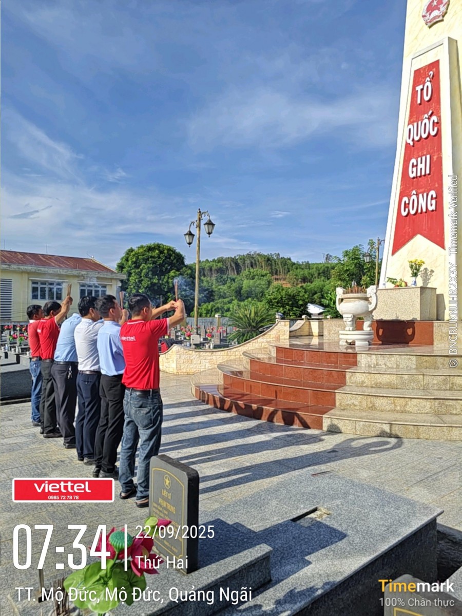 Sáng ngày 22/09/2025 (Mùng 1/8 AL), tại các nghĩa trang, Đài tưởng niệm các Anh hùng liệt sĩ do Viettel Quảng Ngãi nhận chăm sóc, cán bộ, nhân viên các đơn vị Viettel đã thắp hương tưởng nhớ các Anh hùng đã hy sinh vì nền độc lập tự do của Tổ quốc.