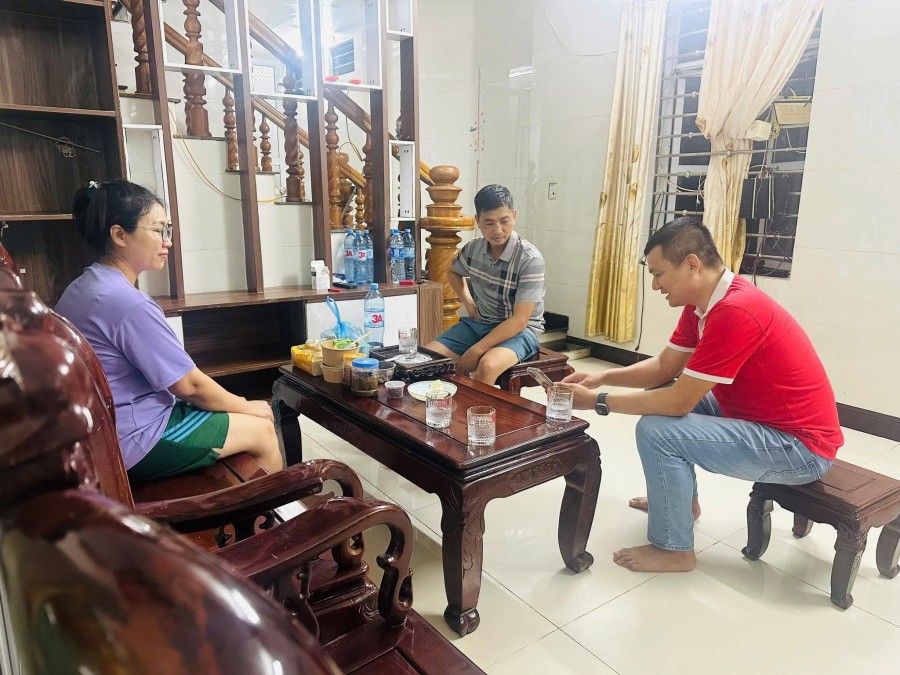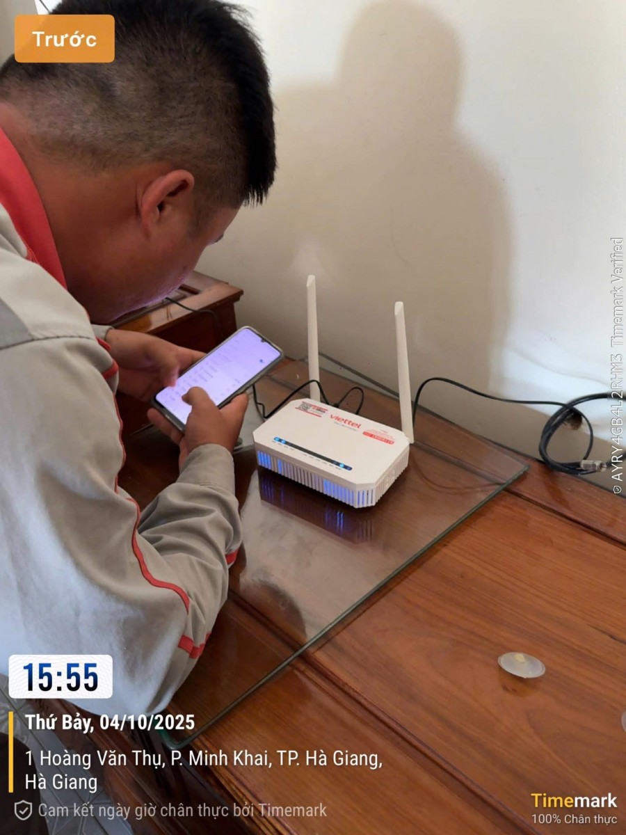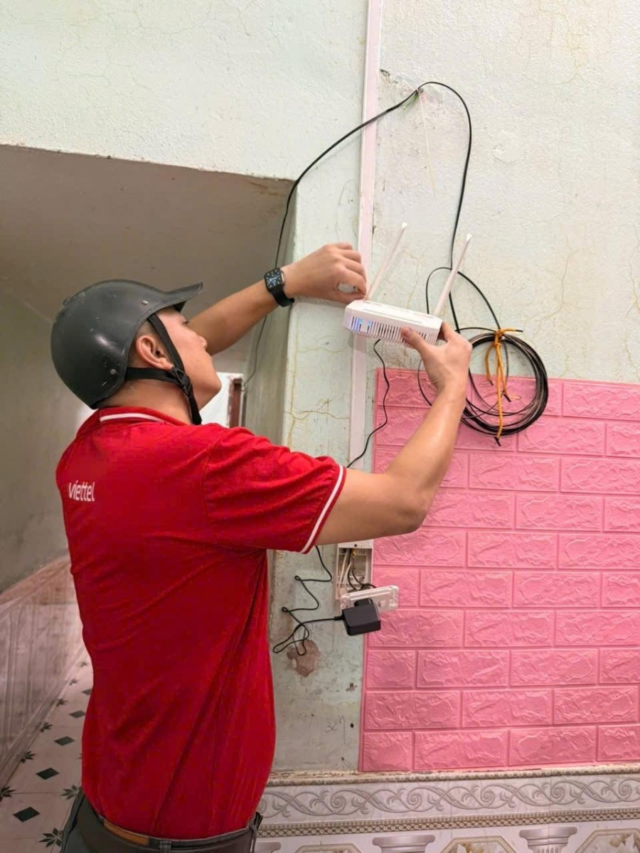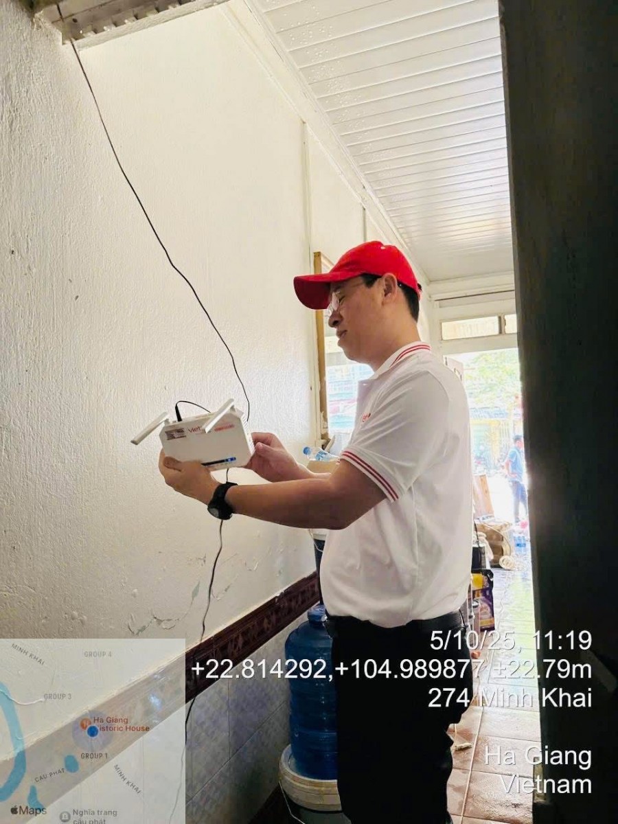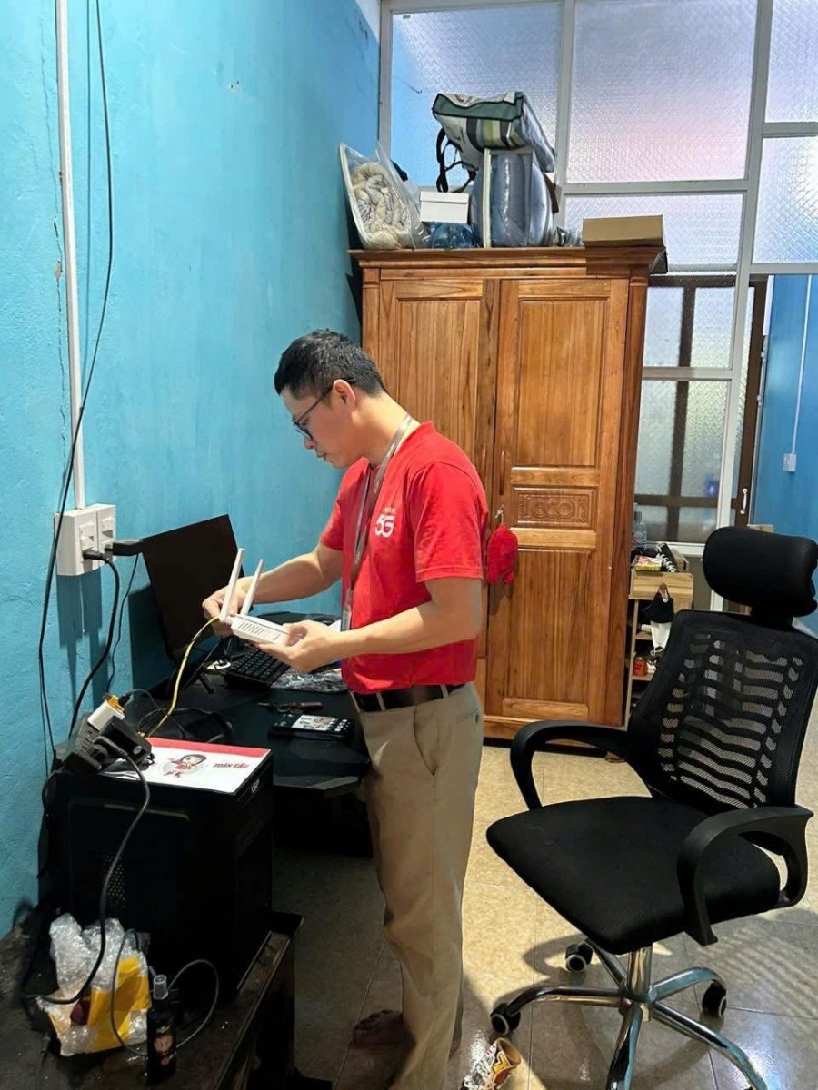 Đ/c Ngô Văn Tuyến - Giám đốc Viettel Tuyên Quang trực tiếp thực hiện công tác CSKH và thay modem bị ngập nước tại nhà KH