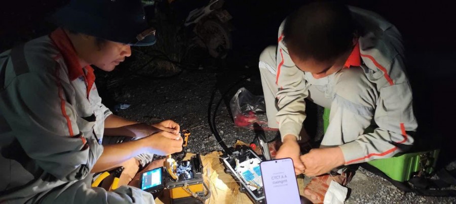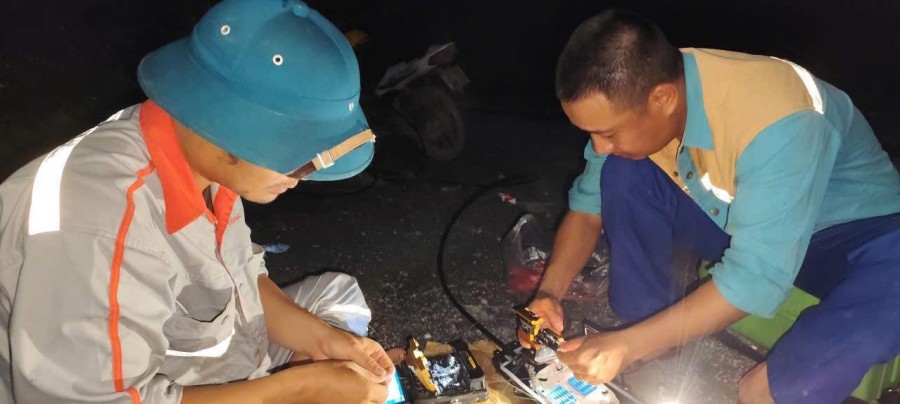 CB phòng Hạ tầng xuyên đêm cùng anh em kỹ thuật cụm ứng cứu thông tin, khôi phục mạng lưới tại địa bàn