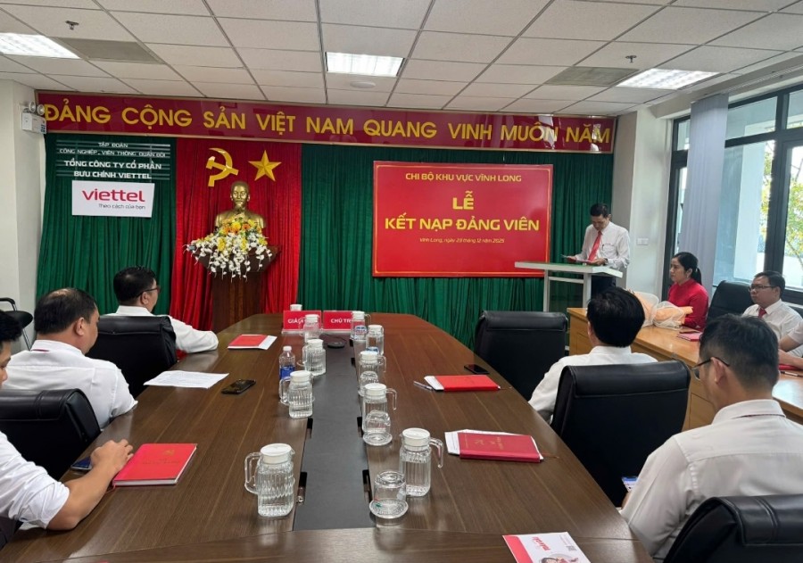 Ngày 23/12/2025, tại Hội trường Tòa nhà Viettel Vĩnh Long, Chi bộ khu vực Vĩnh Long đã long trọng tổ chức Lễ kết nạp Đảng viên mới cho quần chúng ưu tú đồng chí Trần Quốc Trạng