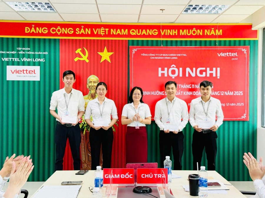 Sáng ngày 04/12, Chi nhánh Bưu chính Viettel Vĩnh Long tổ chức Hội nghị sơ kết hoạt động sản xuất kinh doanh tháng 11 và triển khai định hướng nhiệm vụ tháng 12/2025.