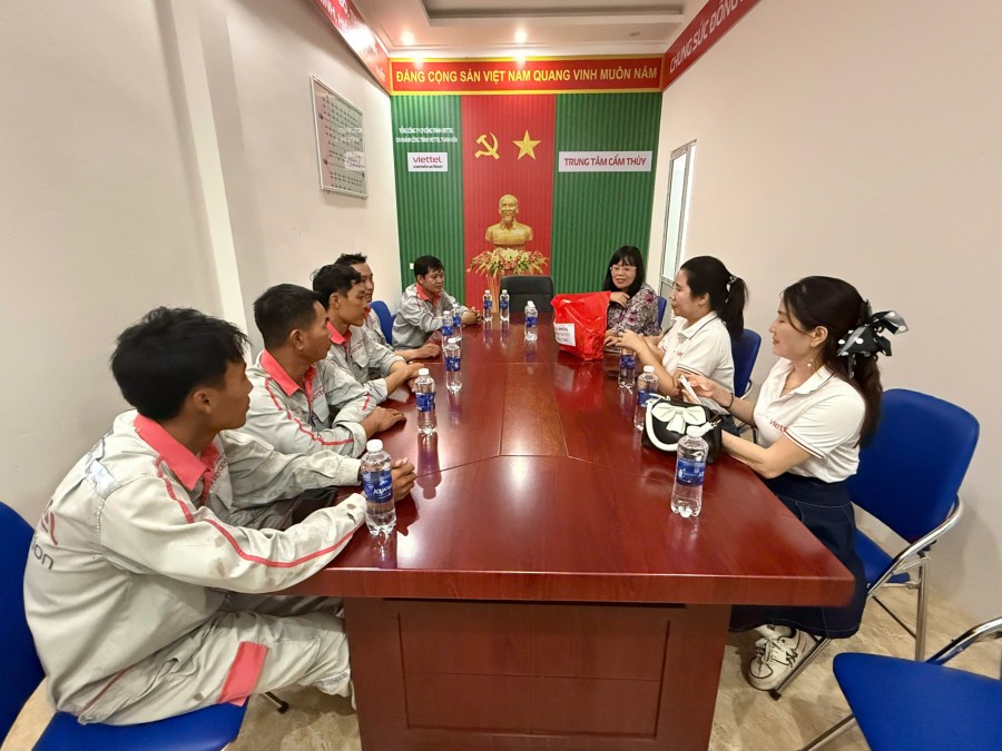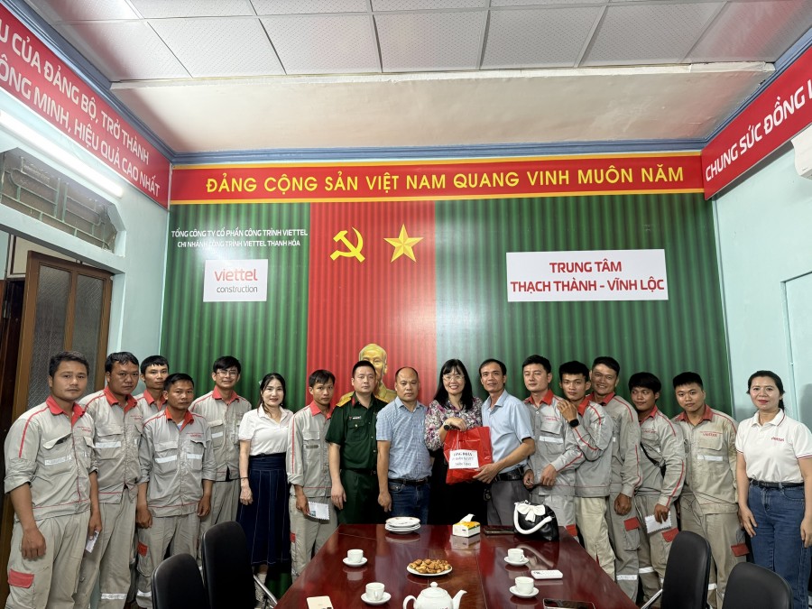 Nhằm kịp thời động viên, chia sẻ cùng lực lượng tuyến đầu, Công đoàn Phòng Nhân sự Tổng công ty Viễn thông Viettel (VTT) đã trực tiếp về Thanh Hóa, đến thăm và tặng quà cho cán bộ, công nhân Viettel tại Trung tâm Cẩm Thủy, Ngọc Lặc và Trung tâm Thạch Thành, Vĩnh Lộc. Đoàn công tác gửi lời thăm hỏi, tri ân sâu sắc tới các kỹ thuật viên đang ngày đêm khắc phục sự cố, giữ vững thông tin liên lạc phục vụ khách hàng.