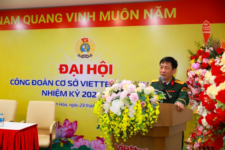 Phát biểu chỉ đạo Đại hội, đồng chí Thượng tá Phạm Tuấn Ngọc, Phó Bí thư Đảng ủy, Phó Giám đốc Viettel Thanh Hóa ghi nhận và biểu dương những kết quả nổi bật mà Công đoàn cơ sở đã đạt được trong nhiệm kỳ qua. Đồng chí khẳng định, trong những năm gần đây, Công đoàn Viettel Thanh Hóa đã thực sự khẳng định được vai trò là cầu nối giữa Đảng ủy, Ban Giám đốc với người lao động; luôn sát cánh cùng chuyên môn trong thực hiện các nhiệm vụ trọng tâm, đồng thời là nơi đoàn viên gửi gắm niềm tin và sự gắn bó. Đồng chí nhấn mạnh: “Công đoàn Viettel Thanh Hóa cần tiếp tục phát huy vai trò nòng cốt trong việc xây dựng môi trường làm việc dân chủ, kỷ cương, sáng tạo; chủ động đồng hành cùng chuyên môn trong thực hiện nhiệm vụ sản xuất kinh doanh và chuyển đổi số. Mỗi cán bộ, đoàn viên công đoàn phải là tấm gương tiên phong, lan tỏa giá trị văn hóa Viettel, khơi dậy tinh thần sáng tạo, trách nhiệm xã hội và triết lý ‘Vì con người’ trong mọi hoạt động.”