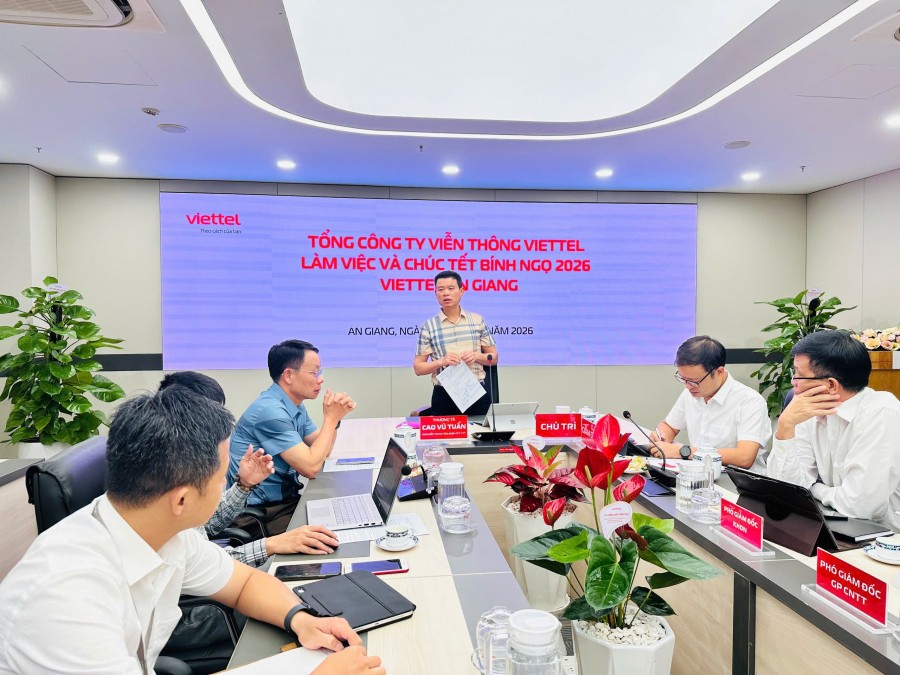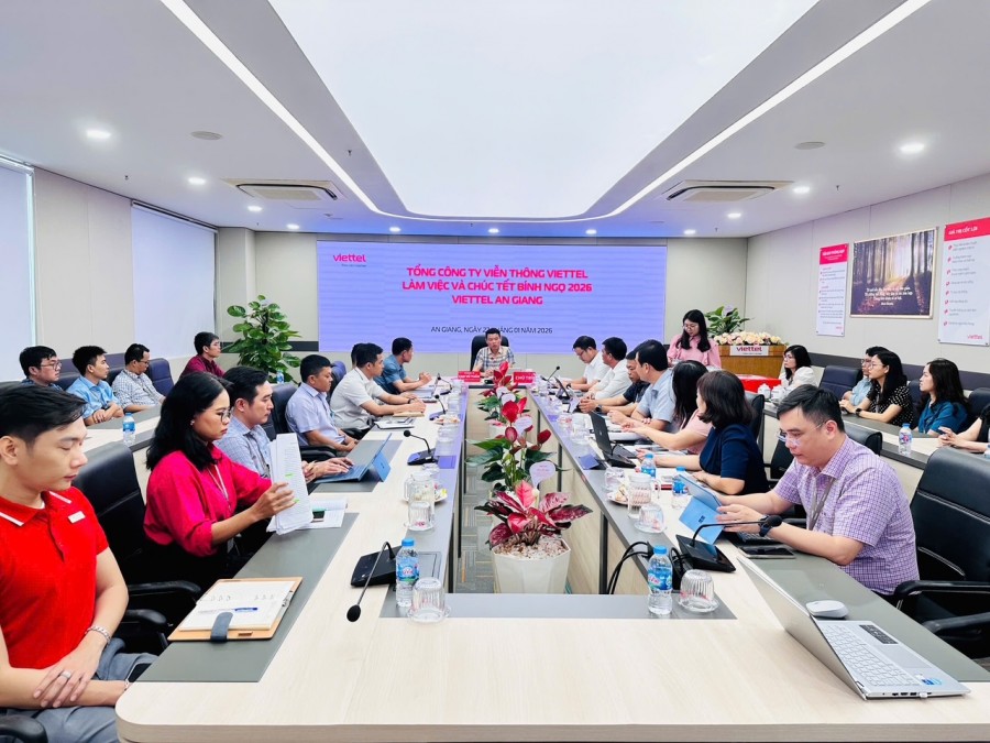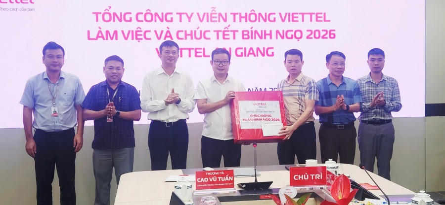 Sáng ngày 27/01/2026, Đoàn công tác của TCT Viễn thông Viettel do đồng chí Thượng tá Cao Vũ Tuấn – Giám đốc Trung tâm Điều hành bán hàng - Trưởng đoàn đã có buổi làm việc và chúc Tết Viettel An Giang