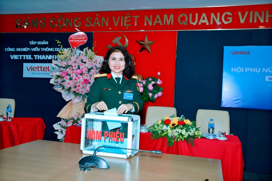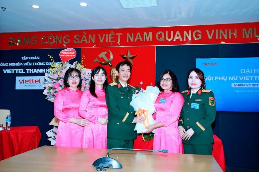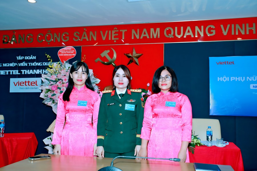 Đại hội vinh dự đón tiếp đồng chí Thượng tá Phạm Tuấn Ngọc – Phó Bí thư Đảng ủy, Phó Giám đốc KHDN Viettel Thanh Hóa đến dự và chỉ đạo; cùng đại diện các tổ chức quần chúng và toàn thể hội viên Hội Phụ nữ.