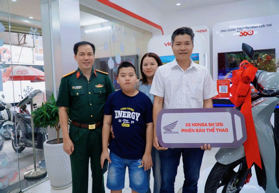 Đ/c Hoàng Trí Công - PGĐ KHDN Viettel TP.HCM trao chiếc SH 125i cuối cùng của Chương trình ưu đãi cuối năm “Hòa mạng liền tay, rinh ngay SH” cho gia đình khách hàng may mắn