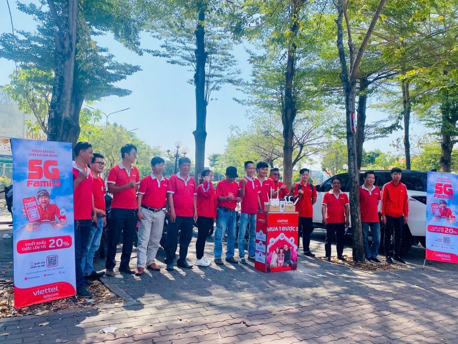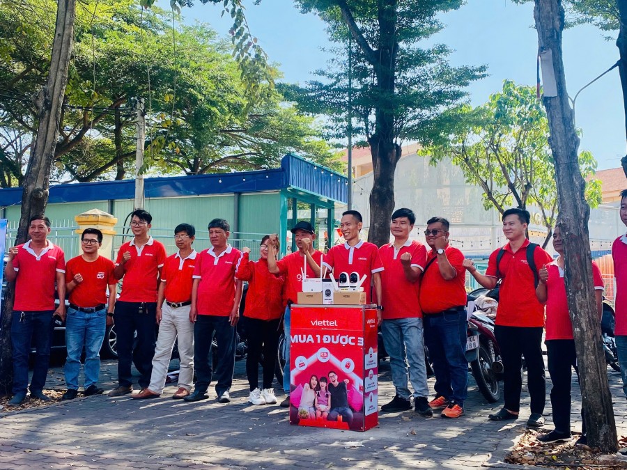 Lực lượng bán hàng trong đồng phục đỏ Viettel trên các đường phố