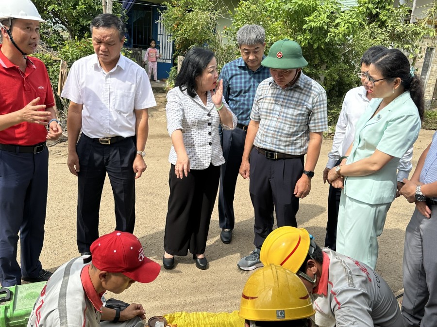 Đồng chí Cao Thị Hòa An - Phó Bí thư Thường trực Tỉnh ủy - Chủ tịch HĐND Tỉnh thăm hỏi động viên đội hỗ trợ xử lý sự cố