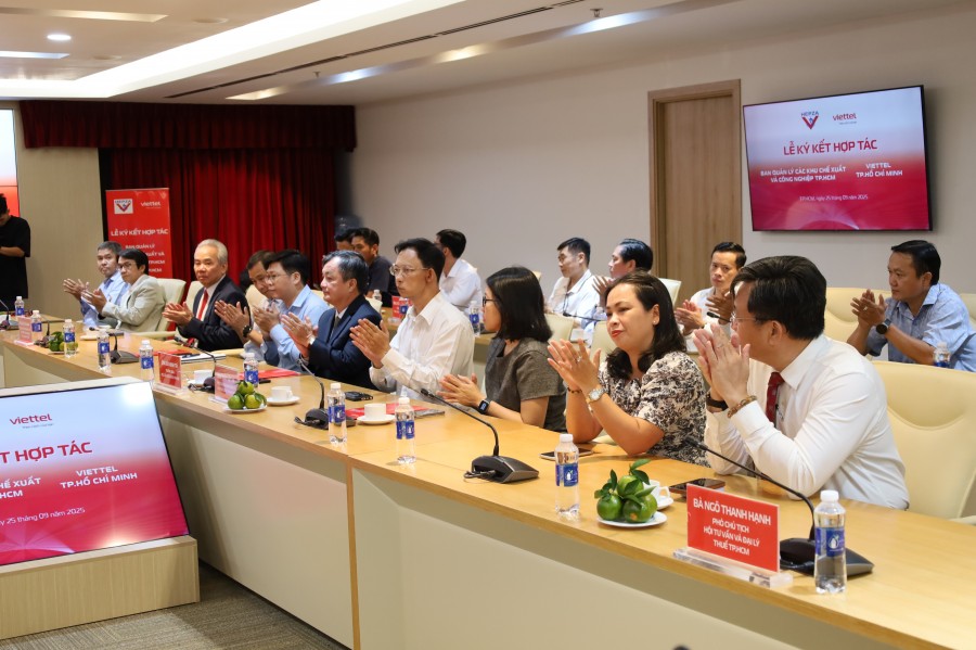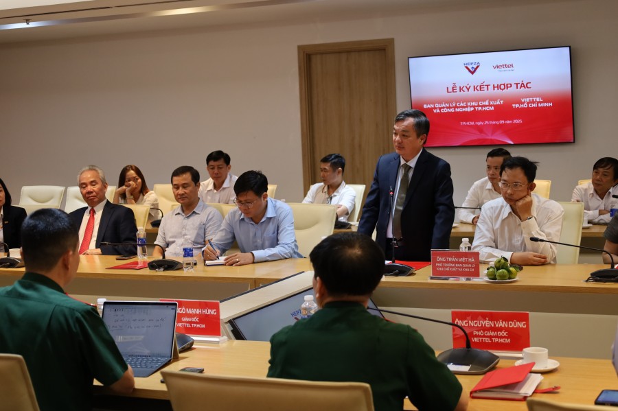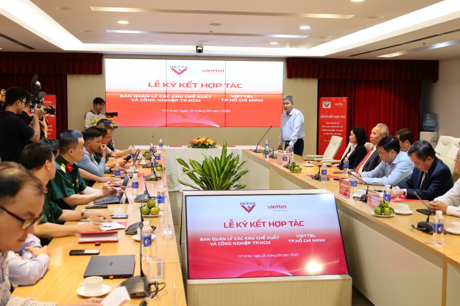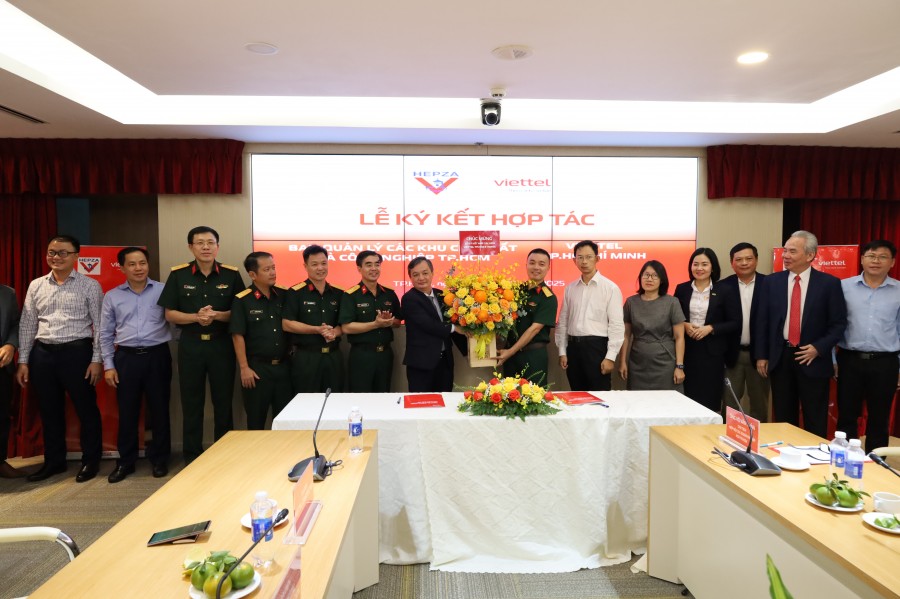 Ngày 25/9/2025, tại tòa nhà Viettel Complex- số 285 Cách Mạng Tháng Tám, Phường Hòa Hưng, TP.HCM đã diễn ra Lễ ký kết thỏa thuận hợp tác giữa Viettel TP.HCM và Ban Quản lý các KCN-KCX TP.HCM (HEPZA) thành công tốt đẹp.
