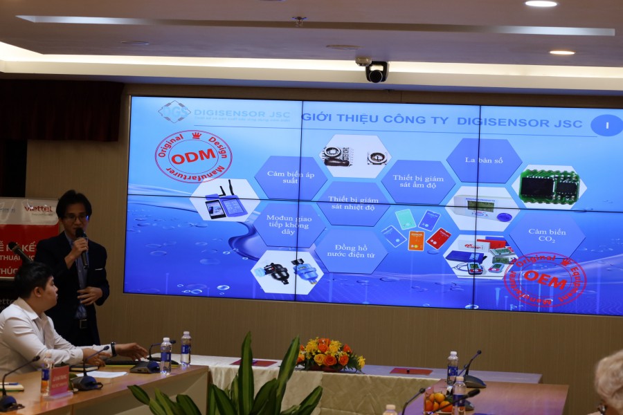 Đại diện Công ty D.G.S giới thiệu hoạt động kinh doanh trong lĩnh vực thiết kế và sản xuất các bộ cảm biến điện tử