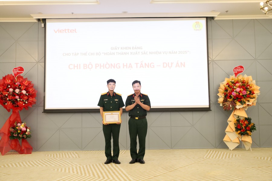 Đ/c Phạm Quảng Đà – Bí thư Đảng ủy Viettel TP.HCM trao giấy khen Đảng năm 2025 cho Chi bộ phòng Hạ tầng – Dự án