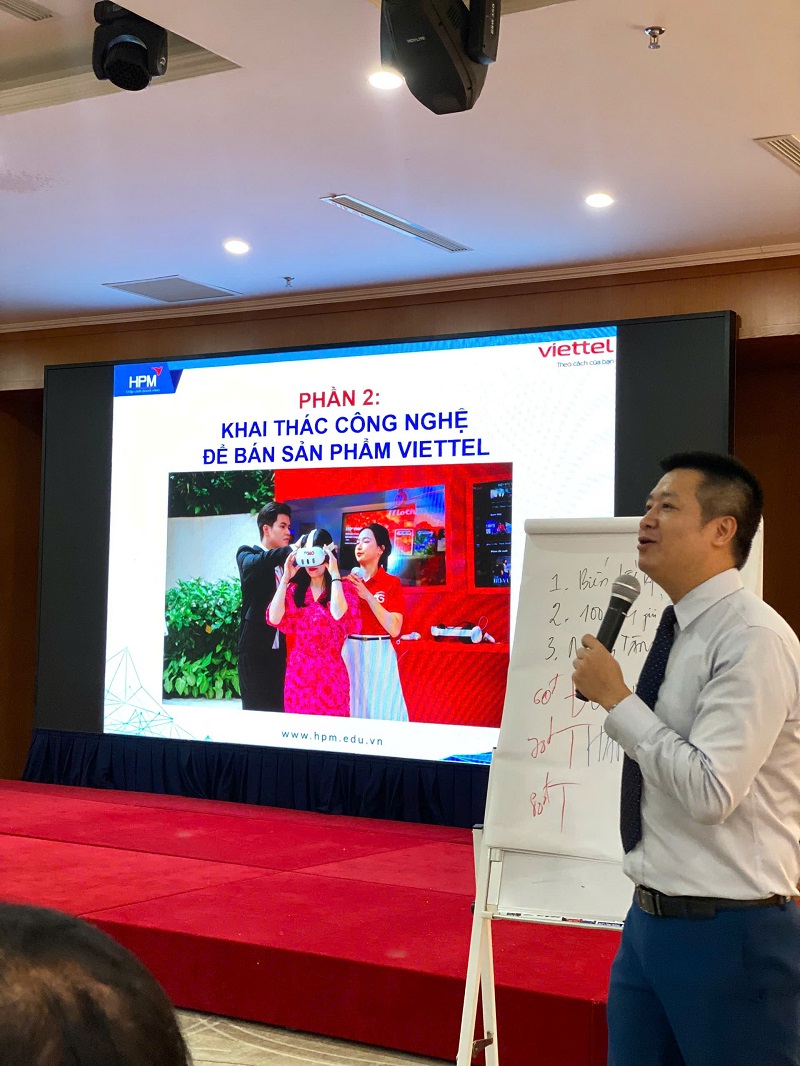 Thời gian đào tạo bắt đầu từ ngày 06/10/2025 đến ngày 24/10/12025. Trực tiếp đứng lớp là chuyên gia hàng đầu về đào tạo trong lĩnh vực kinh doanh ứng dụng công nghệ AI. Việc tham gia đào tạo là yêu cầu bắt buộc đối với mỗi cán bộ, nhân viên Viettel Thành phố Hồ Chí Minh, trước những yêu cầu ngày càng cao về thực hiện công tác bán hàng, đặc biệt là vận dụng trí tuệ nhân tạo cộng với các nền tảng khác của công nghệ nhằm “số hóa” công tác bán hàng. Góp phần nâng cao năng suất lao động, tăng thu nhập cho CBNV trên địa bàn.