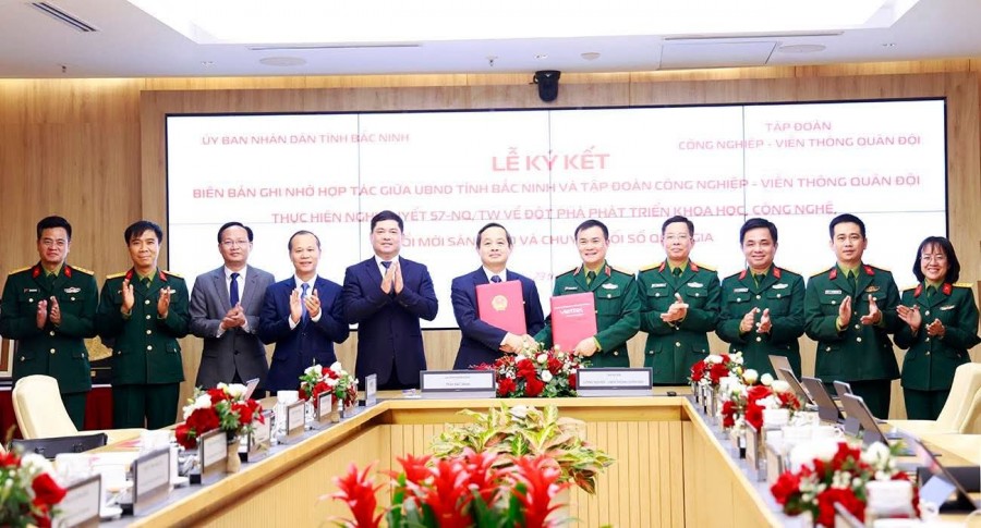 Tại buổi lễ, Trung tướng Tào Đức Thắng, Chủ tịch kiêm Tổng Giám đốc Tập đoàn Viettel và Chủ tịch UBND tỉnh Bắc Ninh Phạm Hoàng Sơn ký kết Biên bản ghi nhớ hợp tác nhằm cụ thể hóa các quan điểm, mục tiêu, nhiệm vụ và giải pháp của Nghị quyết số 57-NQ/TW của Bộ Chính trị và Nghị quyết số 71/NQ-CP của Chính phủ trên địa bàn tỉnh Bắc Ninh; qua đó thúc đẩy phát triển KHCN, đổi mới sáng tạo và chuyển đổi số trở thành khâu đột phá quan trọng hàng đầu, tạo động lực phát triển kinh tế - xã hội nhanh và bền vững, đưa Bắc Ninh tiếp tục giữ vững vị thế trong nhóm địa phương dẫn đầu cả nước.