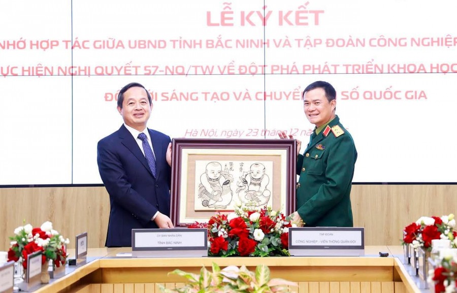 Chiều 23/12, tại trụ sở Tập đoàn Công nghiệp - Viễn thông Quân đội (Viettel), Tập đoàn Viettel và UBND tỉnh Bắc Ninh tổ chức Lễ ký Biên bản ghi nhớ hợp tác thực hiện Nghị quyết số 57-NQ/TW ngày 22/12/2024 của Bộ Chính trị về đột phá phát triển khoa học, công nghệ (KHCN), đổi mới sáng tạo và chuyển đổi số quốc gia.