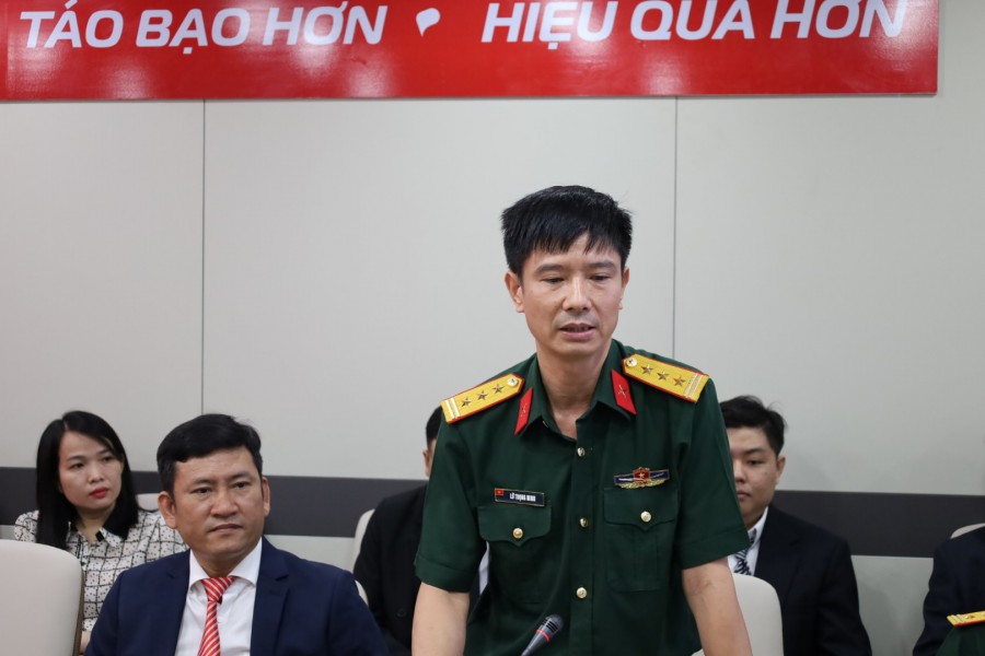 Phát biểu tại buổi tại buối gặp mặt chúc Tết, đồng chí Thượng tá Ngô Mạnh Hùng, GĐ Viettel Thành phố Hồ Chí Minh, thay mặt cho Đảng ủy, BGĐ gửi lời chúc sức khỏe và hoàn thành tốt nhiệm vụ đối với mỗi cá nhân đơn vị trong Viettel Thành phố Hồ Chí Minh trong năm 2026.