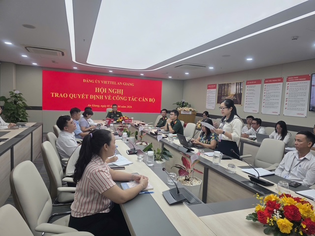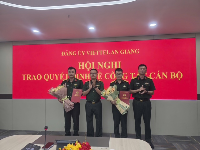 Ngày 01/04/2026, Viettel An Giang đã long trọng tổ chức Lễ trao quyết định về công tác cán bộ đối với các chức danh: Phó Giám đốc KHCN và Giám đốc Trung tâm Kinh doanh, đồng thời thực hiện bàn giao chức danh Giám đốc Trung tâm Kinh doanh theo mô hình mới.