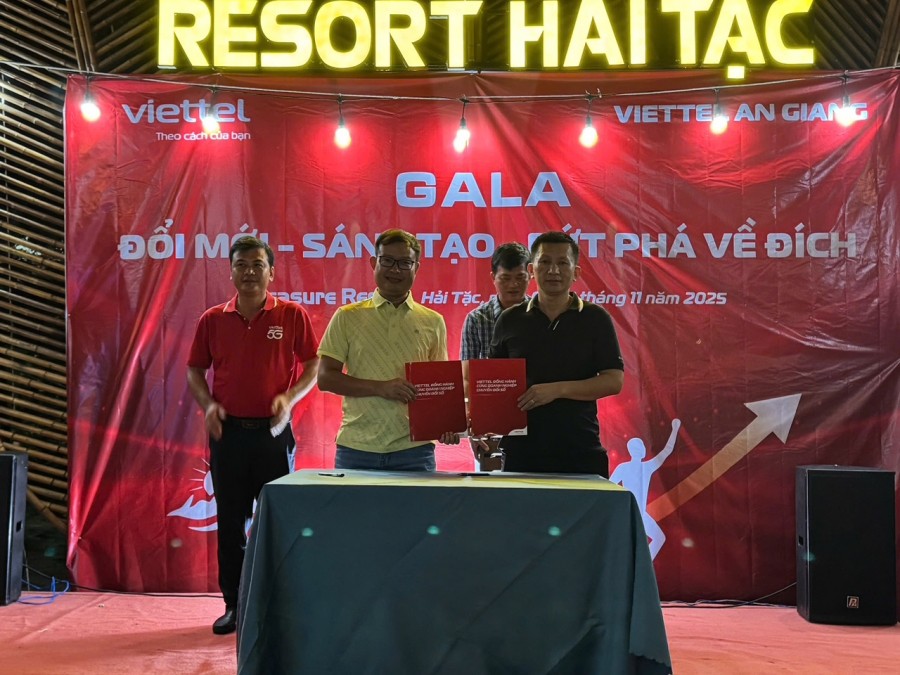 Đặc biệt, trong chuyến đi, Viettel An Giang cũng đã kết hợp triển khai bán hàng, đồng thời kết nối với Resort Treasure để ký kết thỏa thuận hợp tác, mở ra hướng hợp tác mới trong phát triển dịch vụ và hướng tới mục tiêu cùng đồng hành phát triển bền vững.