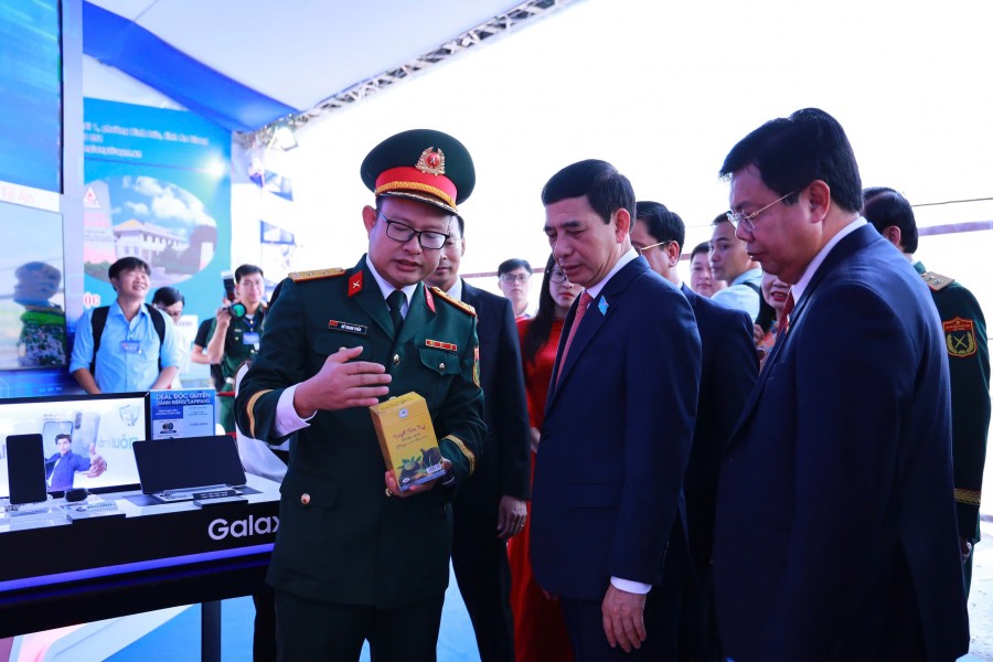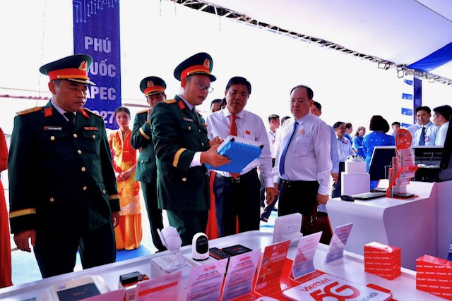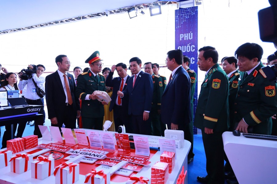 Tại gian hàng, Viettel vinh dự đón tiếp Đại tướng Phan Văn Giang - Ủy viên Bộ chính trị - Bộ trưởng Bộ Quốc Phòng; đồng chí Nguyễn Tiến Hải – Ủy viên BCH Trung ương Đảng, Bí thư Tỉnh ủy An Giang – cùng đại diện các Lãnh đạo, UBND tỉnh sở, ban, ngành đến tham quan, lắng nghe giới thiệu và trải nghiệm trực tiếp các giải pháp công nghệ số.