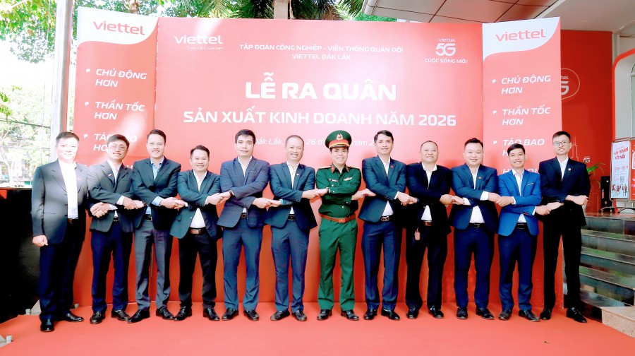 Nhằm cụ thể hóa thông điệp Thi đua Tập đoàn năm 2026: “Chủ động hơn - Thần tốc hơn - Táo bạo hơn - Hiệu quả hơn”. Sáng ngày 26/02/2026, tại trụ sở tầng 1, Viettel Đắk Lắk đã trang trọng tổ chức Lễ ra quân SXKD năm 2026.
