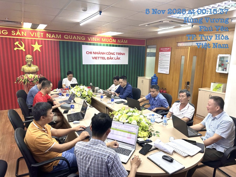 Với tình hình rất cấp bách, rất khẩn trương cùng với mức độ nguy hiểm, với sức gió mạnh đạt sức mạnh cực đại ở cấp siêu bão trên biển, đây là cơn bão rất mạnh và nằm trong số những cơn bão mạnh nhất ảnh hưởng đến miền Trung mà trực tiếp là từ Quảng Ngãi đến Đắk Lắk (Phú Yên cũ) trong 20 năm qua, với mức độ Bão đi rất nhanh, cường độ mạnh, chính vì vậy chiều ngày 04/11/2025 tại Hội trường Viettel Đắk Lắk (Phú Yên cũ), Ban Phòng chống thiên tai Viettel Đắk Lắk khẩn cấp tổ chức họp nhanh rà soát công tác chuẩn bị, công tác đảm bảo phòng chống cơn bão số 13 năm 2025 trước khi dự kiến bão đổ bộ vào đất liền, chủ trì đồng chí Phạm Việt Hùng - Giám đốc Viettel Đắk Lắk, Ban Giám đốc các đơn vị Viettel tại địa bàn, Trưởng phòng ban, Giám đốc Viettel Cụm, Đội trưởng Cụm Kỹ thuật và các đồng chí thành viên ban phòng thủ dân sự của đơn vị.