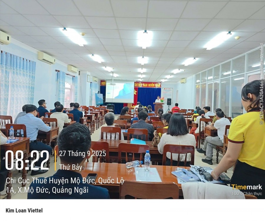 Thực hiện Nghị quyết 68-NQ/TW về phát triển kinh tế tư nhân và triển khai Nghị định 70/2025/NĐ-CP sửa đổi, bổ sung Nghị định 123/2020/NĐ-CP về hóa đơn, chứng từ, từ ngày 10 đến 29/9, Viettel Quảng Ngãi đã phối hợp với Cục Thuế tỉnh và các tổ thuế trên địa bàn tổ chức 5 lớp tập huấn chuyên đề “Chuyển đổi sử dụng hóa đơn máy tính tiền”. Các lớp tập huấn được triển khai tại 20/96 xã, phường với sự tham gia của 155 hộ kinh doanh.