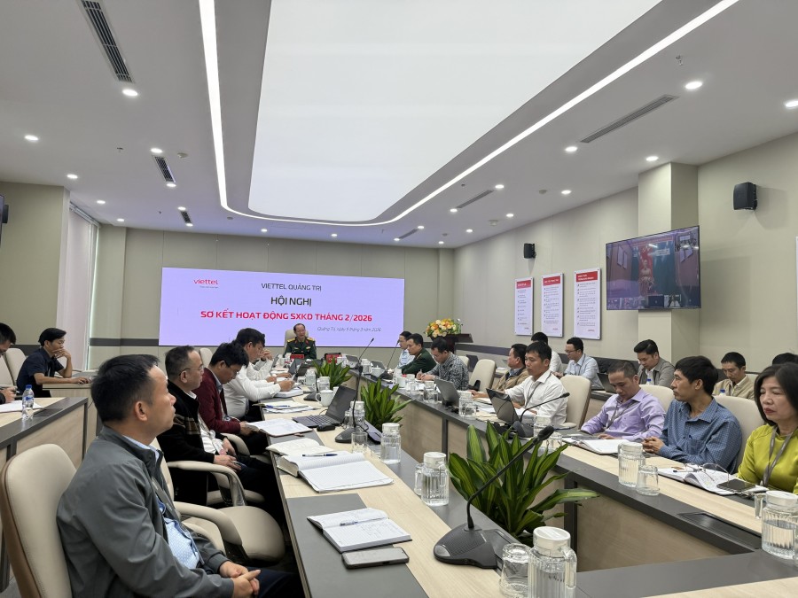 Ngày 5/3/2026, Tạị hội trường phòng họp tầng 5, Viettel Quảng Trị đã tổ chức hội nghị họp sơ kết tháng 2 và triển khai nhiệm vụ SXKD tháng 3/2026. Chủ trì cuộc họp, có đồng chí Thượng tá Phan Xuân Hồng – Giám đốc Viettel Quảng Trị, tham dự có các đồng chí trong BGĐ, trưởng phòng ban, GĐ Viettel cụm, cửa hàng trưởng, và 100% CB, NV khối phòng ban.