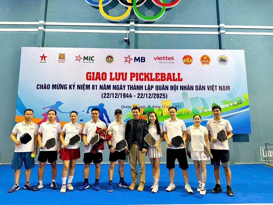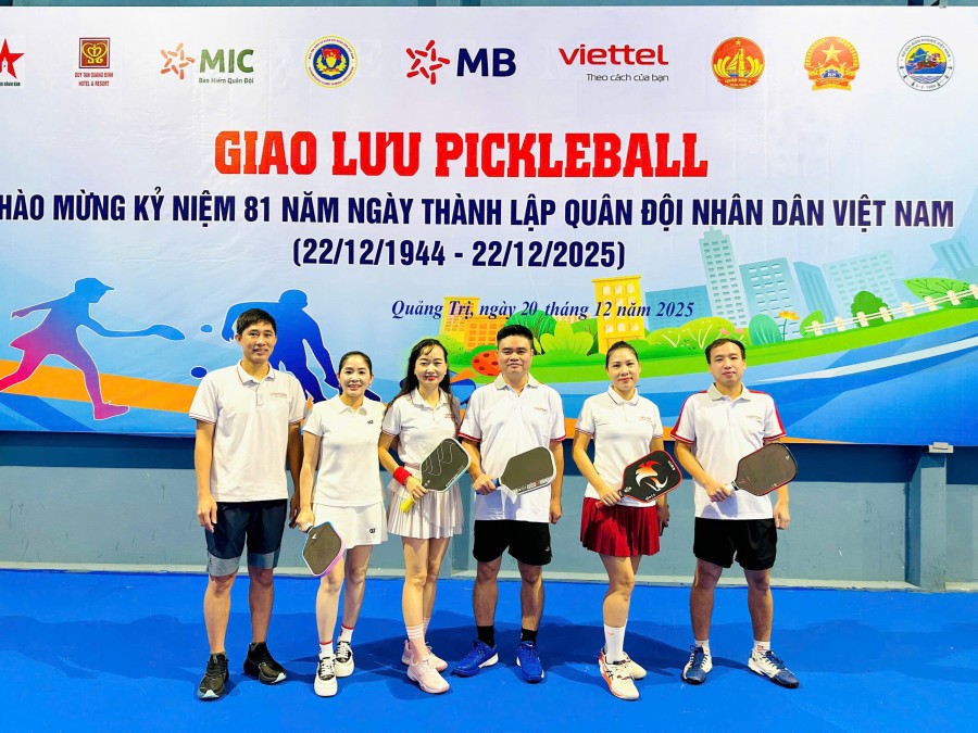 Nhân kỷ niệm 81 năm ngày thành lập Quân đội nhân dân Việt Nam, Viettel Quảng Trị phối hợp với MB Quảng Trị, MB Quảng Bình tổ chức giải thi đấu Pickleball dành cho các VĐV đang làm việc tại các đơn vị Quân đội trên địa bàn tỉnh Quảng Trị.