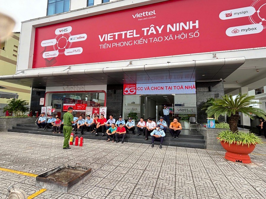Ngày 11/10/2025, Viettel Tây Ninh phối hợp với Công An PCCC & CHCN tỉnh Tây Ninh tổ chức tuyên truyền và diễn tập phương án phòng cháy chữa cháy (PCCC) và cứu hộ cứu nạn (CHCN) cho Đội PCCC cơ sở. Buổi diễn tập nhằm nâng cao nhận thức, kỹ năng xử lý tình huống cháy nổ, đồng thời củng cố khả năng phối hợp giữa các lực lượng trong công tác PCCC tại đơn vị. Trong chương trình, cán bộ và nhân viên được hướng dẫn sử dụng các phương tiện chữa cháy như bình CO₂, bình bột, vòi phun nước và thực hành xử lý các tình huống giả định sát với thực tế, bao gồm phát hiện cháy, báo động, sơ tán người và tổ chức dập lửa. Hoạt động này giúp các thành viên Đội PCCC cơ sở nắm vững quy trình ứng phó, nâng cao ý thức cảnh giác, chủ động phòng ngừa, góp phần đảm bảo an toàn tính mạng, tài sản và duy trì môi trường làm việc an toàn tại Viettel Tây Ninh.