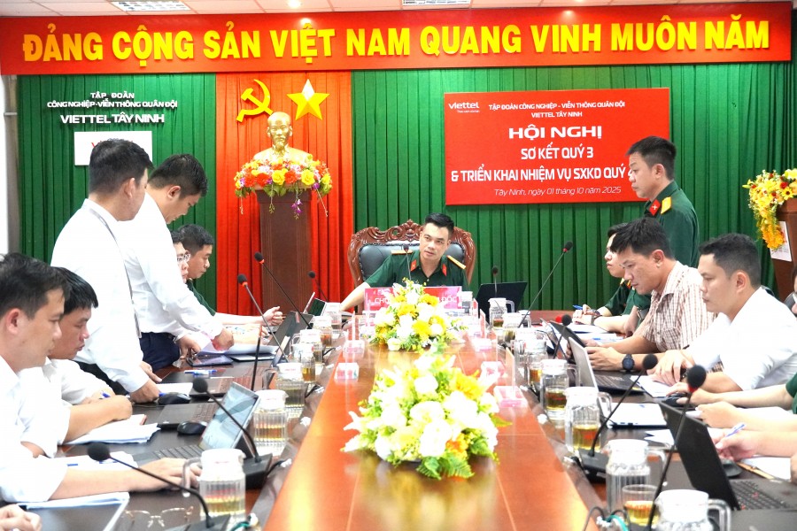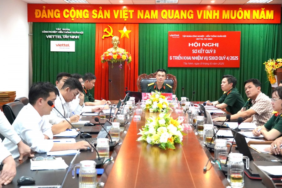Sáng ngày 01/10/2025, Viettel Tây Ninh đã tổ chức Hội nghị sơ kết quý 3/2025 và triển khai nhiệm vụ sản xuất kinh doanh quý 4/2025. Hội nghị nhằm đánh giá toàn diện hoạt động SXKD quý 3, chỉ ra những kết quả đạt được, những tồn tại, hạn chế trong công tác điều hành, quản lý của các Khối, các Phòng ban cũng như các đơn vị Viettel trên địa bàn.