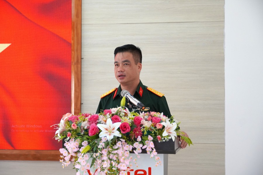 Đ/c Thượng tá - Phạm Thanh Sơn - Bí thư đảng ủy - Giám đốc Viettel Tây Ninh nhận xét chào cờ tháng 12