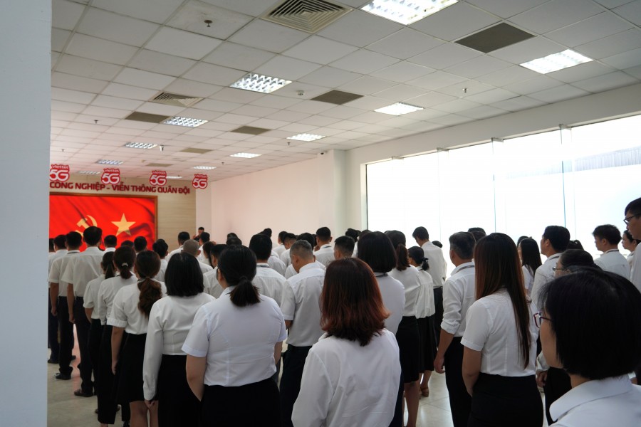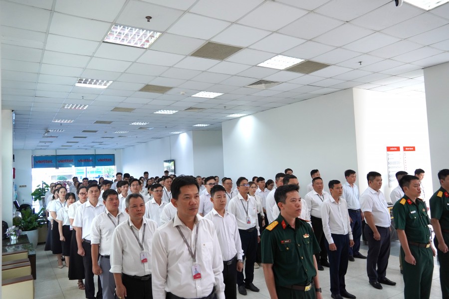 Lãnh đạo, BGĐ và CBCNV Viettel các đơn vị tại Tòa Nhà thực hiện lễ chào cờ tháng 12