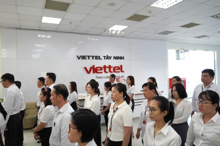 Sáng nay thứ hai, ngày 1/12, Viettel Tây Ninh tổ chức Lễ chào cờ đầu tháng tại Tòa nhà Viettel Tây Ninh. Buổi lễ diễn ra trang nghiêm với sự tham gia đầy đủ của lãnh đạo, cán bộ công nhân viên Viettel các đơn vị đang công tác tại tòa nhà, dưới sự chủ trì của đồng chí Thượng tá Phạm Thanh Sơn – Bí thư Đảng ủy - Giám đốc Viettel Tây Ninh. Nghi thức chào cờ và hát Quốc ca đã thể hiện tinh thần thiêng liêng, niềm tự hào dân tộc và ý chí đoàn kết, quyết tâm của toàn đơn vị.