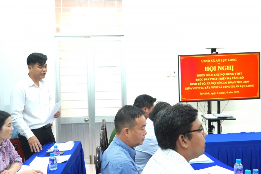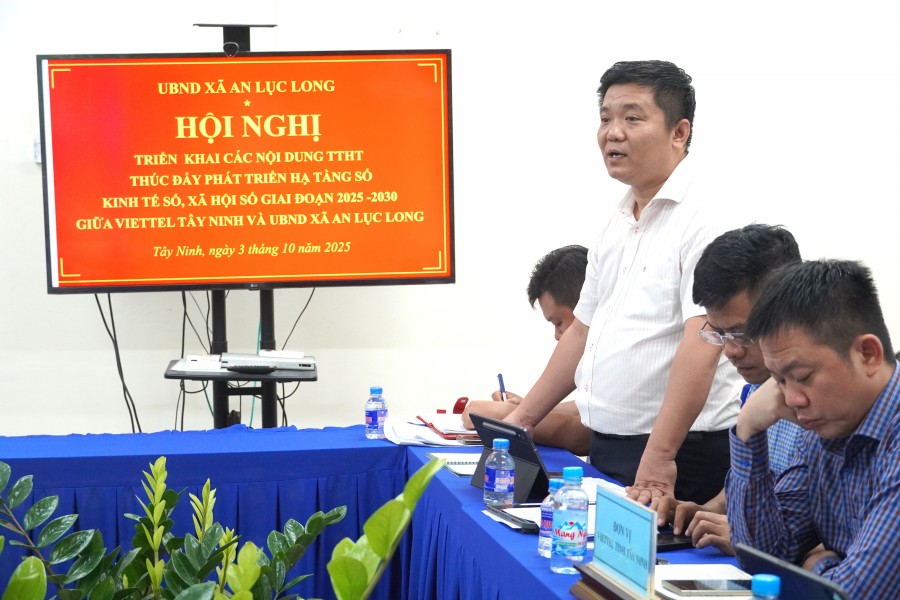 Sáng ngày 03/10/2025, tại Hội trường Ủy ban nhân dân xã An Lục Long, đã diễn ra Hội nghị triển khai thỏa thuận hợp tác về phát triển hạ tầng số, kinh tế số, xã hội số giai đoạn 2025 – 2030 giữa Viettel Tây Ninh và UBND xã An Lục Long.