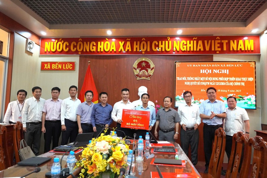 Nhân dịp này, Viettel Tây Ninh đã trao tặng 01 bộ máy tính cho Trung tâm phục vụ hành chính công xã Bến Lức, hỗ trợ nâng cao năng lực vận hành và phục vụ người dân trong giai đoạn tới.