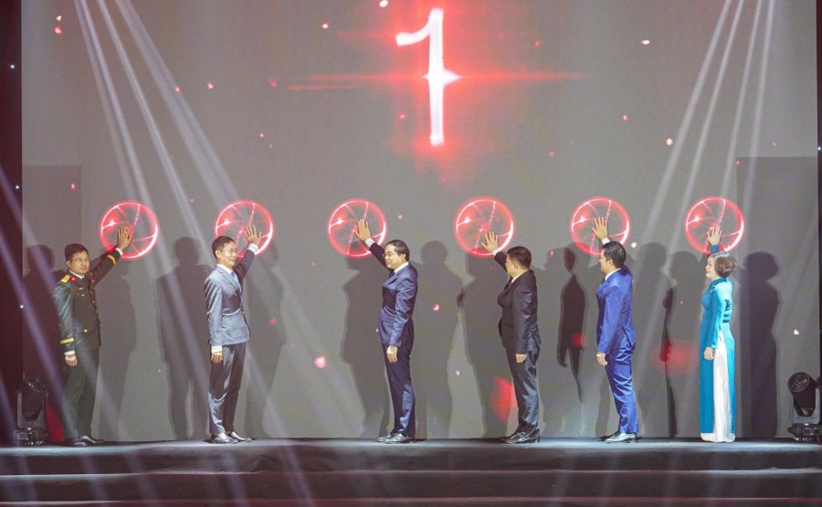 Các Đại biểu thực hiện nghi thức ra mắt ứng dụng Sinh viên số S-TNU