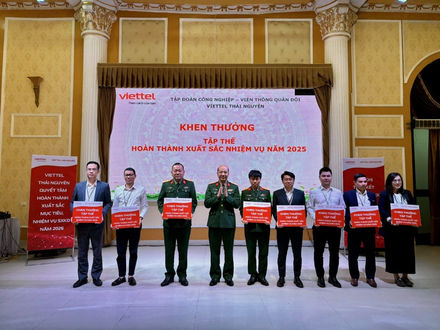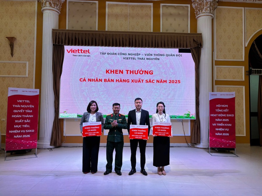 Nhân dịp này, Viettel Thái Nguyên đã tổ chức khen thưởng, biểu dương các tập thể, cá nhân hoàn thành xuất sắc nhiệm vụ và 03 cá nhân bán hàng xuất sắc năm 2025.