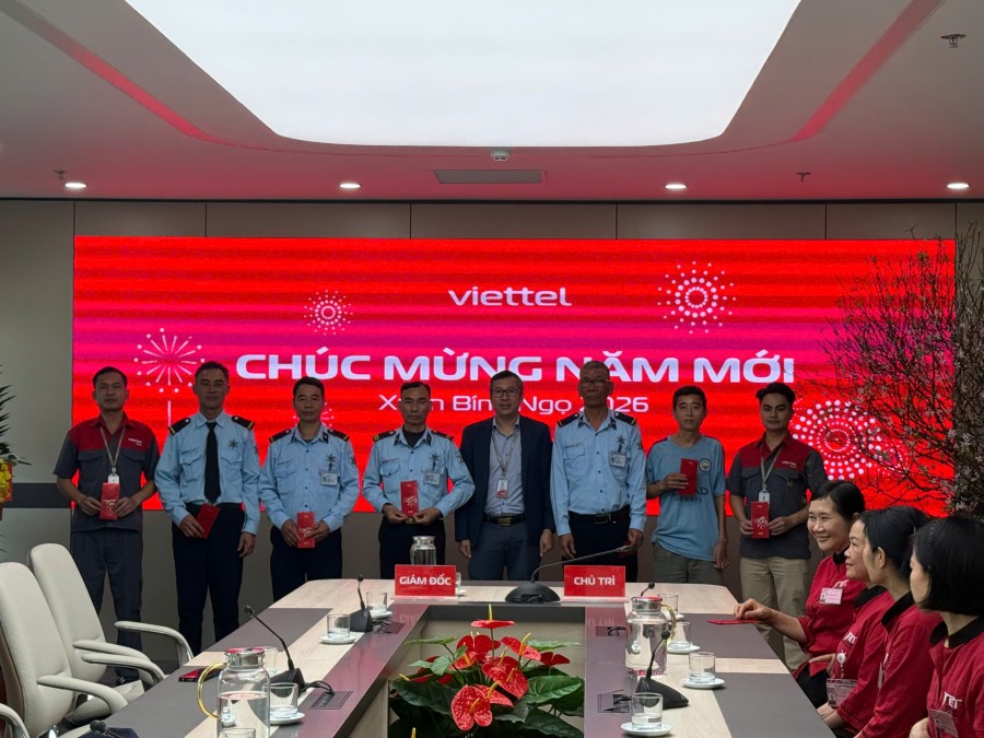 Trong không khí đầu xuân Bính Ngọ 2026, Viettel Thanh Hóa đã tổ chức chương trình gặp mặt và trao quà tri ân lực lượng bảo vệ và tạp vụ đang làm việc tại tòa nhà Viettel Thanh Hóa những con người thầm lặng nhưng luôn góp phần quan trọng trong việc giữ gìn môi trường làm việc an toàn, sạch đẹp và chuyên nghiệp cho toàn thể cán bộ nhân viên.