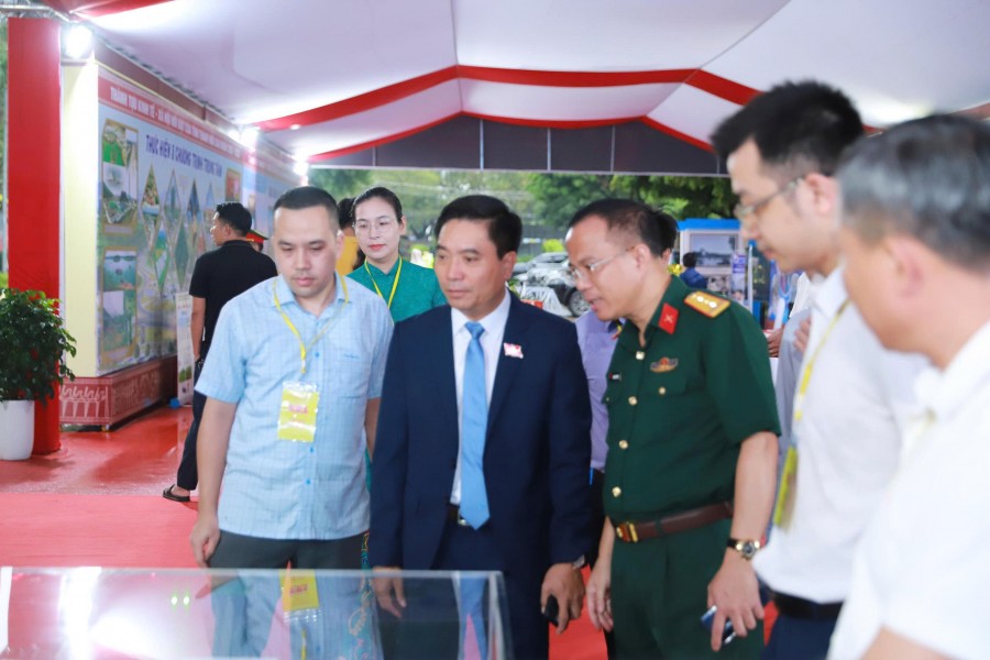 Lãnh đạo Tỉnh ủy, Ủy ban tỉnh, Sở ban ngành tham quan và trải nghiệm gian hàng trưng bày tại Đại hội