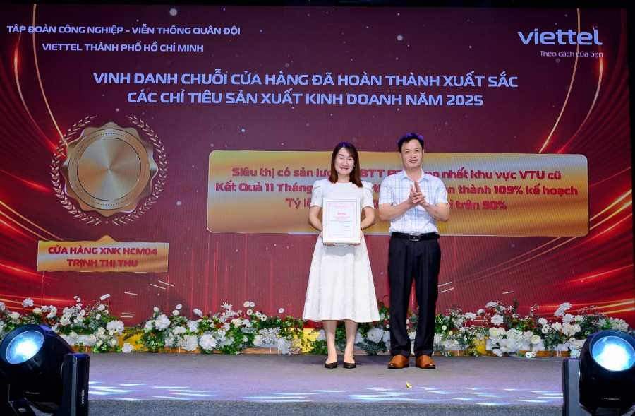 Đ/c Giám đốc Viettel TP.HCM trao khen thưởng cho các Điểm bán xuất sắc năm 2025