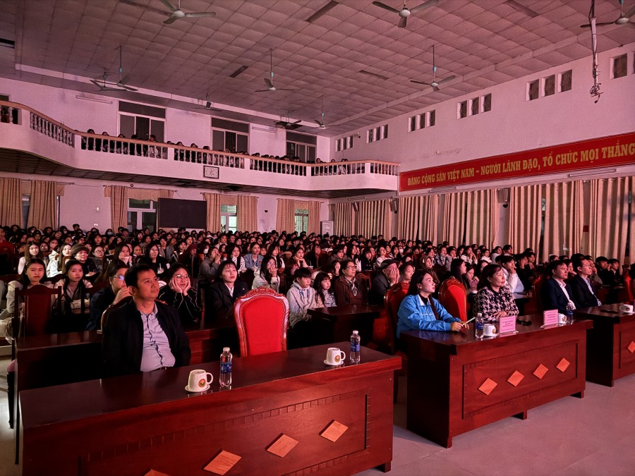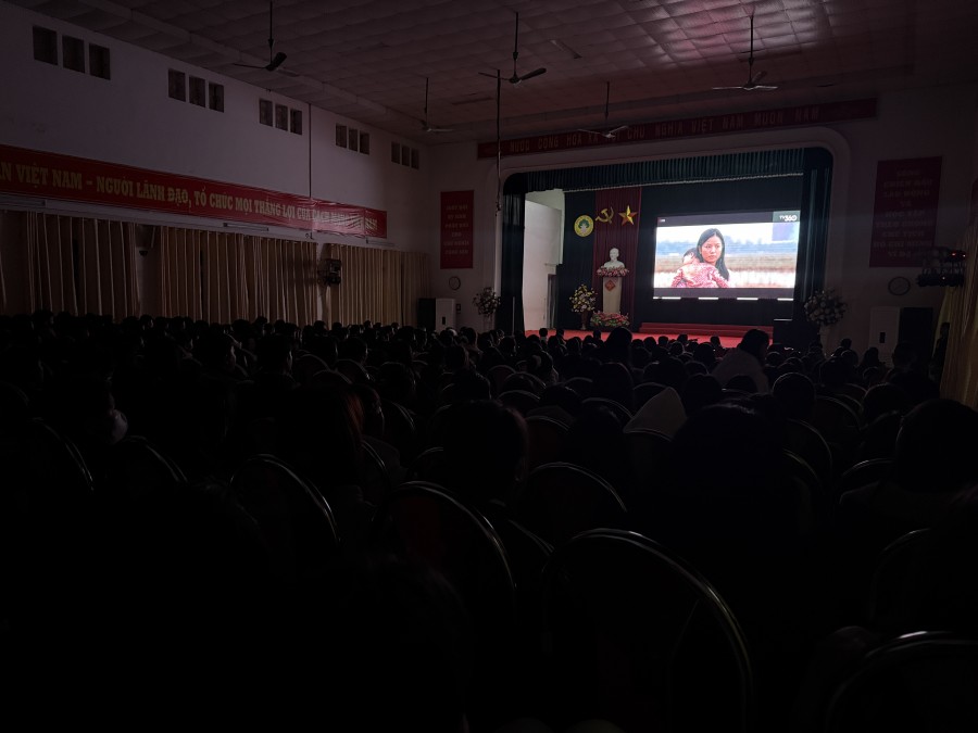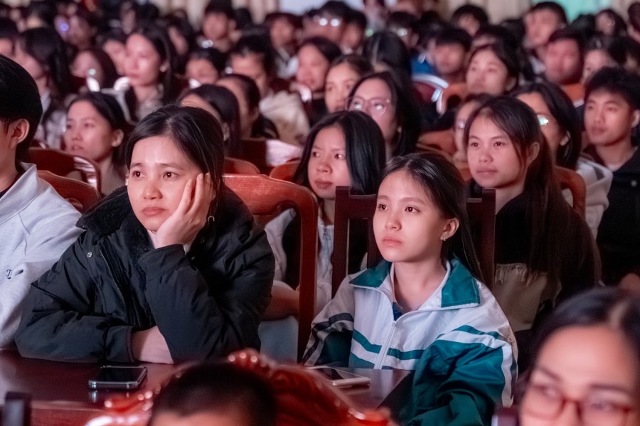 (Gần 600 Giảng viên, Sinh viên chăm chú xem phim)