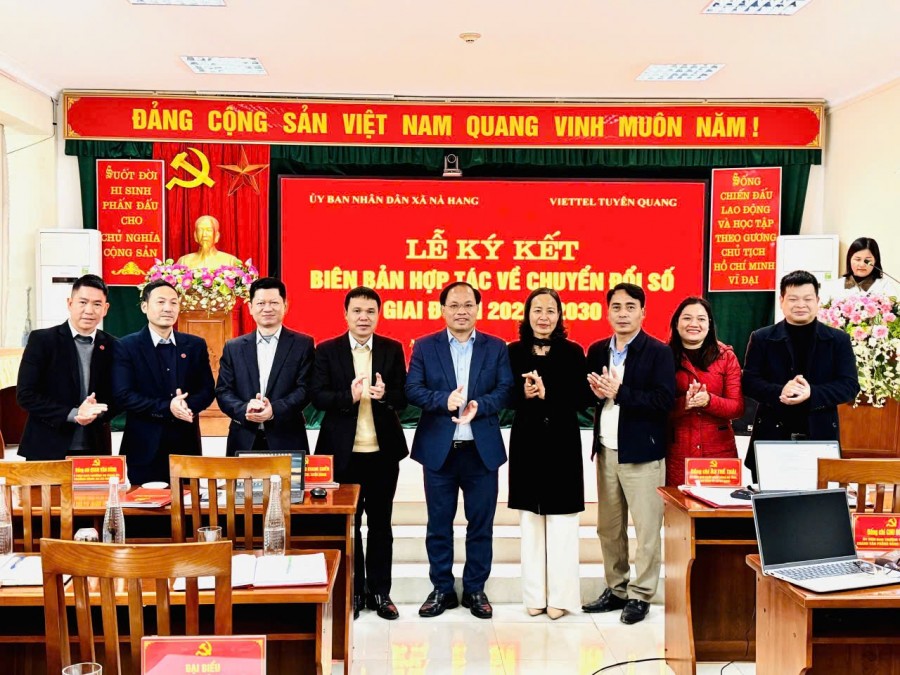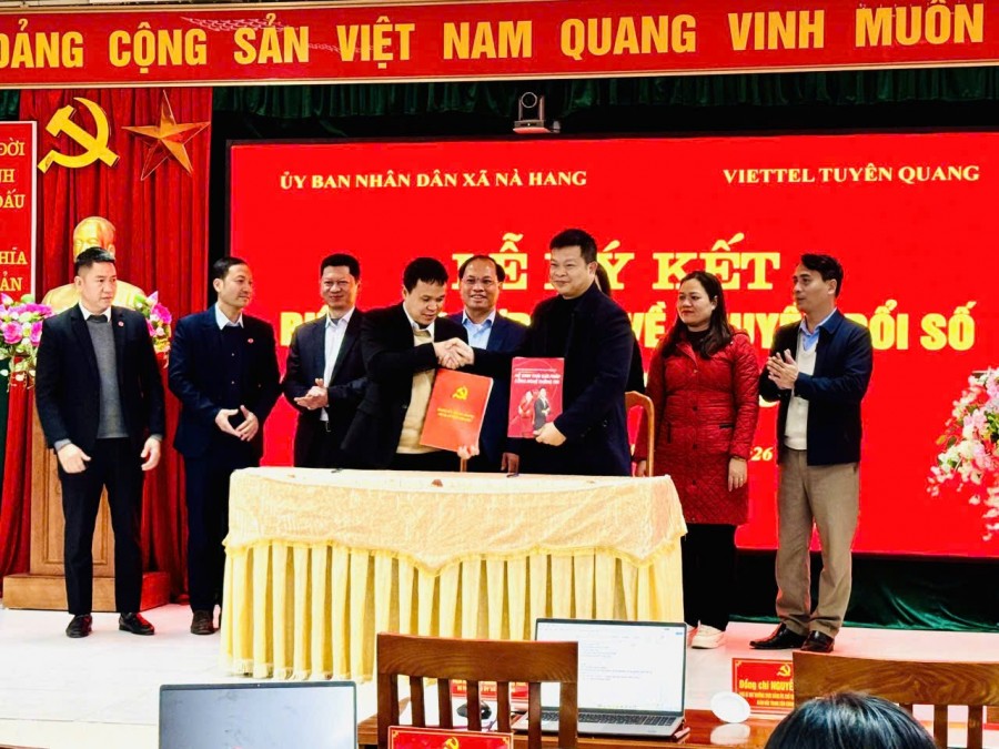 Ngày 23/01/2026, tại trụ sở UBND xã Na Hang, tỉnh Tuyên Quang đã diễn ra lễ ký kết biên bản hợp tác về chuyển đổi số giữa Viettel Tuyên Quang và UBND xã.